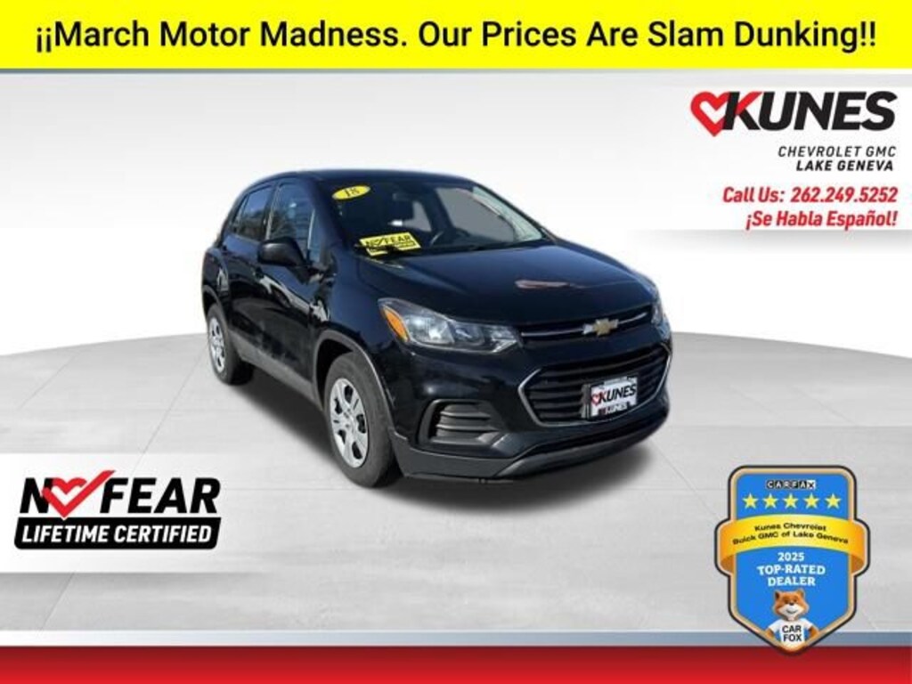 Recent Arrival! 2018 Chevrolet Trax LS Mosaic Black Metallic ECOTEC 1.4L I4 SMPI DOHC Turbocharged VVT FWD 6-Speed AutomaticOdometer is 9258 miles below market average!Certification Program Details:** NO FEAR LIFETIME CERTIFIED PREOWNED **Over $2,895 of value at no cost!*LIFETIME WARRANTY!*3 Day Exchange Policy!*Complimentary powertrain warranty with ability to upgrade to fully comprehensive coverage and/or extend up to 125,000 miles!*125+ Point Inspection by our factory trained ASE Certified technicians and reconditioned to the highest standards.*Complimentary AutoCheck History Report*Complimentary AutoCheck Buyback Protection*Financing for Everyone - Guaranteed credit approval regardless of credit history!*Over 30 lenders who compete to get you the best financing terms*No payments for up to 90 days!*Weekly, Bi-Weekly, and Monthly Payment Options for all buyers!*First Free Oil Change!*Trade anytime policy - cars, trucks, boats, RVs, motorcycles - as long as we donât have to feed it, you can trade it!** APPLE CARPLAY/ ANDROID AUTO, ** BACKUP CAMERA, ** SMARTPHONE APP ENABLED, 6-Speaker Audio System Feature, Front wheel independent suspension, Preferred Equipment Group 1LS, Premium audio system: Chevrolet MyLink, Variably intermittent wipers.Awards:* 2018 KBB.com 10 Most Awarded BrandsFind out why our dealerships have won DealerRater.com DEALER OF THE YEAR a whopping 10 TIMES! Call, email, or live chat with one of our friendly sales professionals now to schedule your test drive! Prices shown do not include tax, title, registration and $599 service fees.