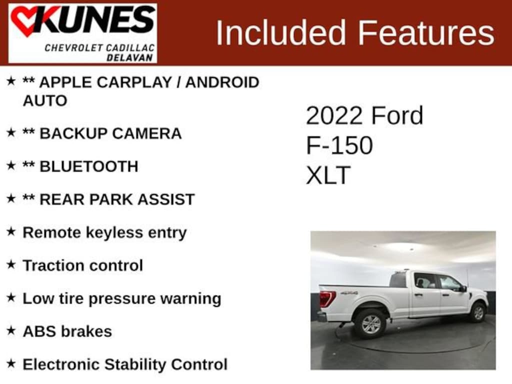 *While we make every effort to ensure the data listed here is correct, there may be instances where some of the factory rebates, incentives, options or vehicle features may be listed incorrectly as we get data from multiple data sources. PLEASE MAKE SURE to confirm the details of this vehicle with the dealer to ensure its accuracy. Dealer cannot be held liable for data that is listed incorrectly. * MSRP is the Manufacturer's Suggested Retail Price (MSRP) of the vehicle. Prices shown do not include tax, title, registration and $499 service fees. Consumers, please be aware that the above advertised price assumes you are purchasing the vehicle from the Kunes Auto Group dealership where it is listed as being offered for sale. If the vehicle is transferred from one location to another, a transfer fee for this transportation of $300 will be added to the purchase transaction. If you would like to purchase such vehicle without paying a transfer fee, you can take delivery of the vehicle at the store it is listed as being sold from and avoid the additional transfer fee. Shipping fees vary depending on location, contact dealer for shipping details and costs. Vehicle listings on this website may not reflect correct vehicle items or accessories as we get data from multiple sources. Always verify or physically inspect the vehicle to make sure the equipment and accessories listed are included. Vehicle listings on this website may not reflect correct vehicle items or accessories as we get data from multiple sources. Always verify or physically inspect the vehicle to make sure the equipment and accessories listed are included.