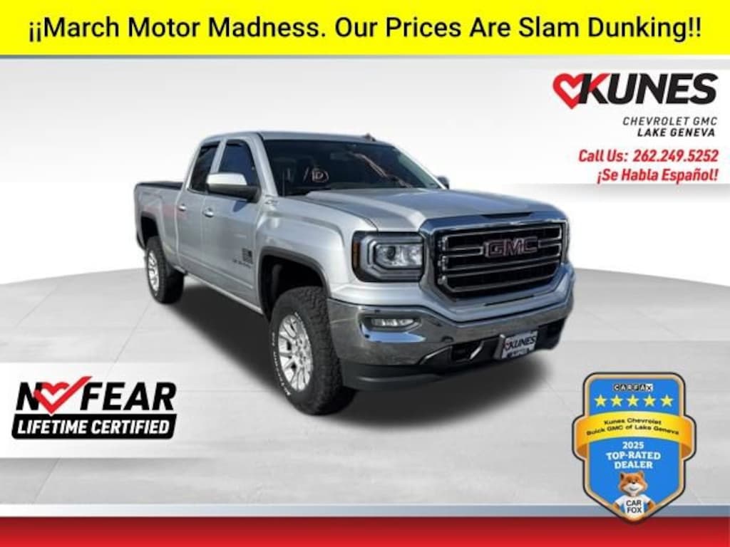 Recent Arrival! 2018 GMC Sierra 1500 SLE Quicksilver Metallic EcoTec3 5.3L V8 4WD 6-Speed Automatic Electronic with OverdriveCARFAX One-Owner. Odometer is 20424 miles below market average!Certification Program Details:** NO FEAR LIFETIME CERTIFIED PREOWNED **Over $2,895 of value at no cost!*LIFETIME WARRANTY!*3 Day Exchange Policy!*Complimentary powertrain warranty with ability to upgrade to fully comprehensive coverage and/or extend up to 125,000 miles!*125+ Point Inspection by our factory trained ASE Certified technicians and reconditioned to the highest standards.*Complimentary AutoCheck History Report*Complimentary AutoCheck Buyback Protection*Financing for Everyone - Guaranteed credit approval regardless of credit history!*Over 30 lenders who compete to get you the best financing terms*No payments for up to 90 days!*Weekly, Bi-Weekly, and Monthly Payment Options for all buyers!*First Free Oil Change!*Trade anytime policy - cars, trucks, boats, RVs, motorcycles - as long as we donât have to feed it, you can trade it!** APPLE CARPLAY/ ANDROID AUTO, ** REMOTE START, ** BACKUP CAMERA, ** SPRAY IN BEDLINER, 6-Speed Automatic Electronic with Overdrive, 4WD, Black Cloth, 10-Way Power Driver's Seat Adjuster, 150 Amp Alternator, Body Color Bodyside Moldings, Body Color Door Handles, Body Color Power Adjustable Heated Outside Mirrors, Body-Color Mirror Caps, Bodyside moldings, Bumpers: chrome, Delay-off headlights, Electric Rear-Window Defogger, EZ Lift & Lower Tailgate, Front Center Armrest w/Storage, Fully automatic headlights, Heated door mirrors, LED Cargo Box Lighting, Manual Tilt/Telescoping Steering Column, Off-Road Suspension Package, Power door mirrors, Power Windows w/Driver Express Up & Down, Preferred Equipment Group 3SA, Premium audio system: GMC Infotainment System, Rear step bumper, Rear Wheelhouse Liners, Remote keyless entry, Remote Locking Tailgate, Rubberized-Vinyl Front Floor Mats, Rubberized-Vinyl Rear Floor Mats, Single-Zone Air Conditioning, SLE Value Package, Speed-sensing steering, Tilt steering wheel, Trailering Equipment, Wheels: 18 x 8.5 Bright Machined Aluminum.Find out why our dealerships have won DealerRater.com DEALER OF THE YEAR a whopping 10 TIMES! Call, email, or live chat with one of our friendly sales professionals now to schedule your test drive! Prices shown do not include tax, title, registration and $599 service fees.