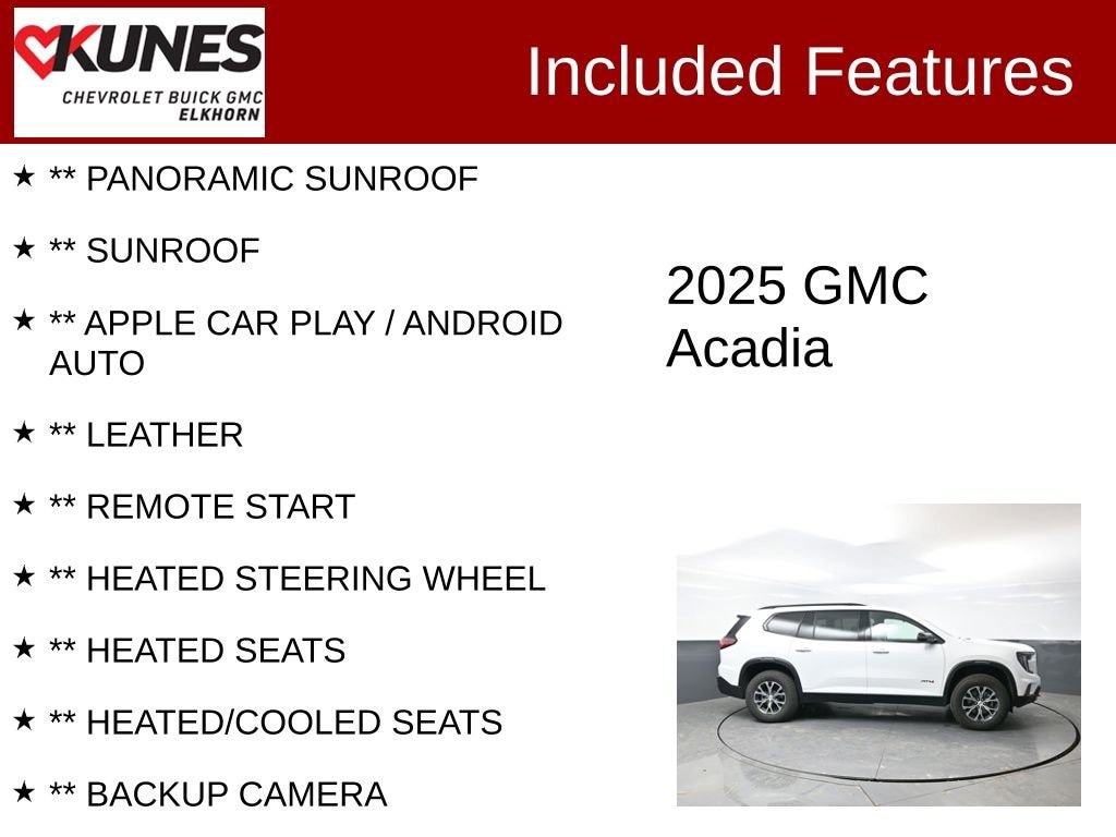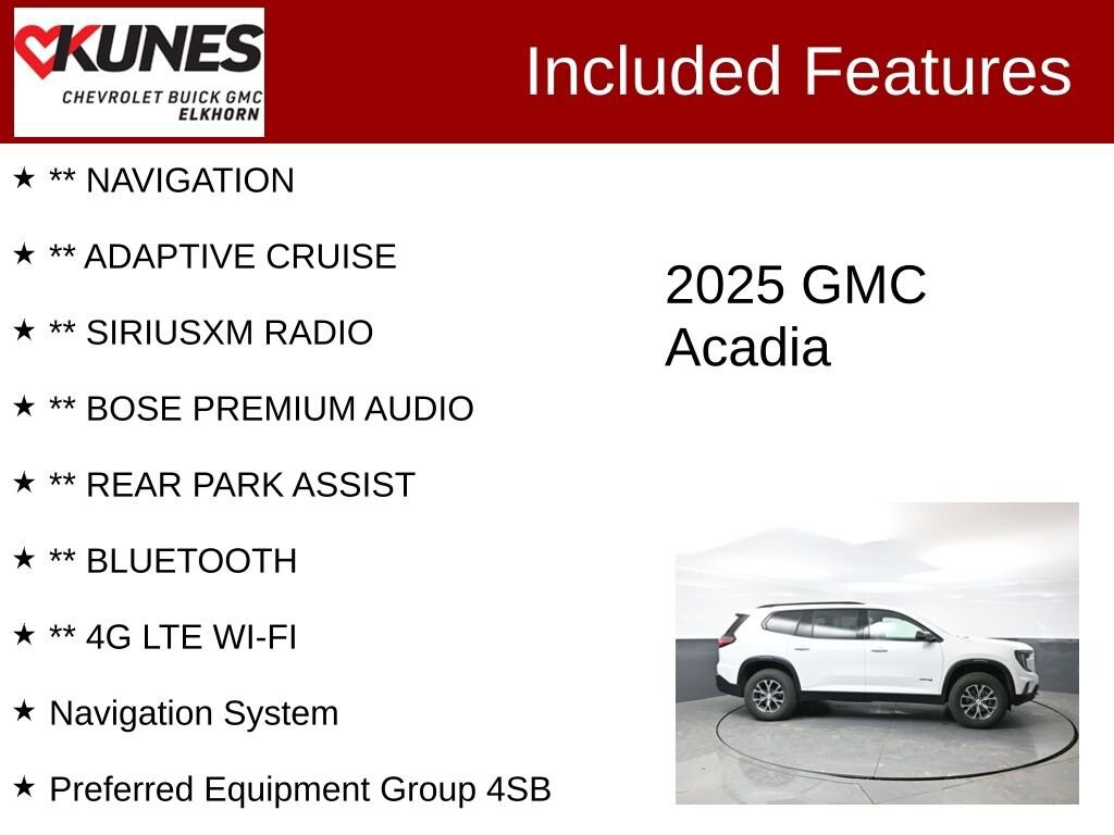 2025 GMC Acadia AT4 2.5L DOHC 8-Speed Automatic AWD Clean CARFAX. CARFAX One-Owner. Odometer is 5515 miles below market average!