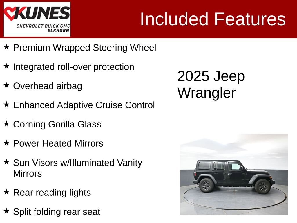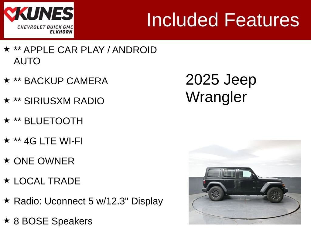 2025 Jeep Wrangler Sport S 2.0L I4 DOHC 8-Speed Automatic 4WD Clean CARFAX. CARFAX One-Owner.