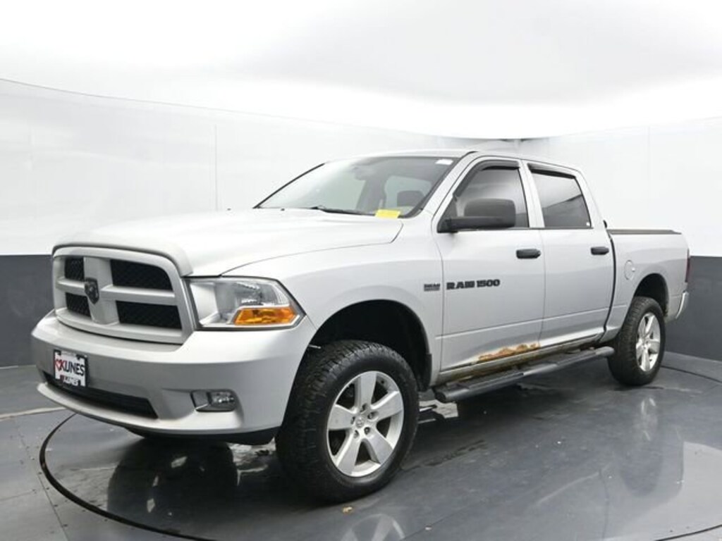 2012 Ram 1500 Express Bright Silver Metallic Clearcoat 4WD HEMI 5.7L V8 Multi Displacement VVTRecent Arrival! Clean CARFAX. Popular Equipment Group: cruise control, keyless entry, power door locks, satellite radio, split bench seat Express Customer Preferred Group: aluminum wheels, floor mats, all-season tires, wheel locks Auto-dimming rearview mirror with Bluetooth connection Satellite radio capability 5.7L V8 engine 6-speed automatic transmission Four-wheel drive and 4-wheel disc brakes Tire pressure monitor Automatic headlights and fog lamps Heated power side mirrors 17 steel wheels, aluminum wheels included Tinted windows and rear privacy glass Rear bench seat with split folding design Second row in-floor storage bins and rear under seat storage Air conditioning and power windows AM/FM radio, CD player, MP3 input, auxiliary audio input Power steering and 160-amp alternator Tip start electronic starting feature Trailer tow with 4-pin connector wiring Stability control and traction control Front, rear, and head-curtain airbags with front seatbelt height adjusters Sentry Key theft deterrent system